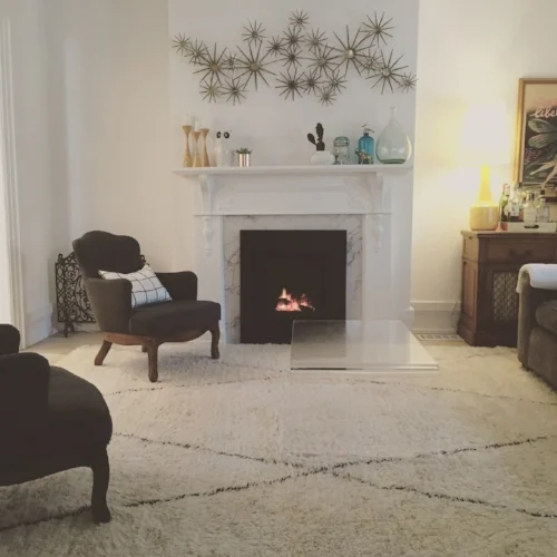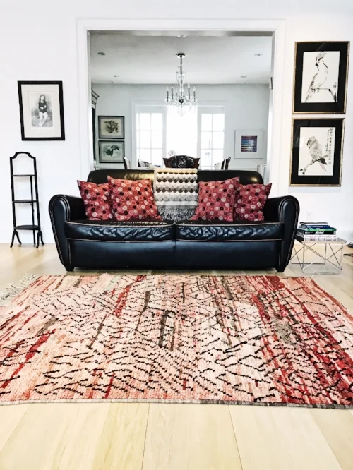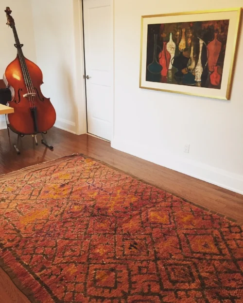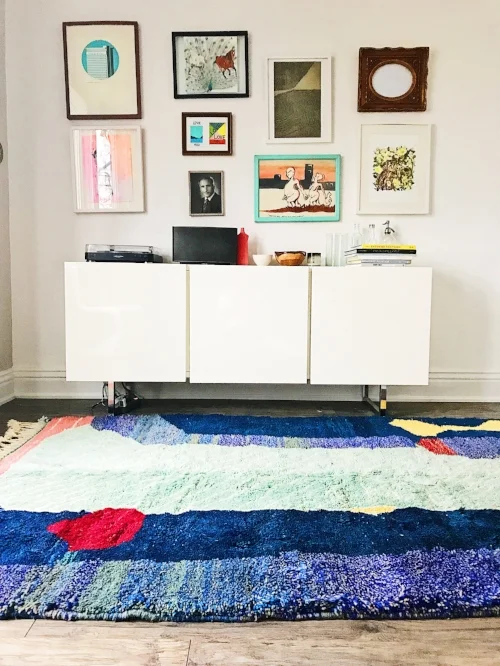 Choosing a rug—especially when it is a vintage, one of a kind piece—is a big decision for most of our customers. Sometimes, the rug seems to choose the person, and the whole transaction is over in 20 minutes. Most of the time, we go through almost every piece in the shop and often end up with a narrowed down selection for a Mellah-Chez-Vous before THE RUG is chosen. We love this process, but totally understand that when all the rugs get pulled out it can feel like a RYOGBIV explosion in our 500 square foot College Street store/showroom in Toronto, Canada.